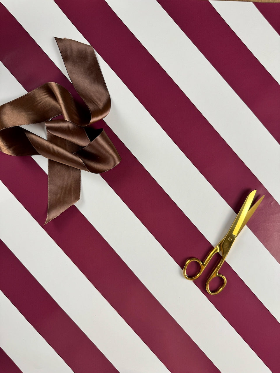 Alpine Stripe blends classic sophistication with cozy alpine charm, featuring bold diagonal stripes in deep red and warm ivory. Perfect for creating a striking look under the Christmas tree, wrapping elegant gifts, or adding a timeless accent to walls and cabinetry with peel-and-stick wallpaper. Part of the Chalet Plaid Palette, it brings a heritage-inspired touch to both festive holiday décor and year-round styling.