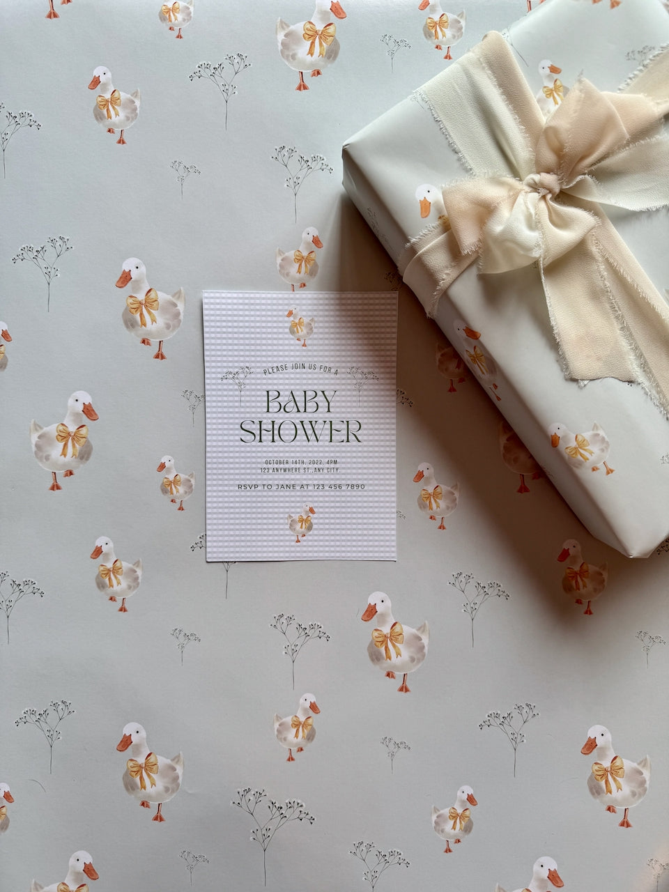 Adorable little ducklings waddle and splash across this charming nursery-inspired wrap. With its soft, vintage feel and playful yet elegant design, itās perfect for baby showers, springtime gifts, or anything needing a sprinkle of sweetness. A classic and cheerful choice for little bundles of joy! š£āØ