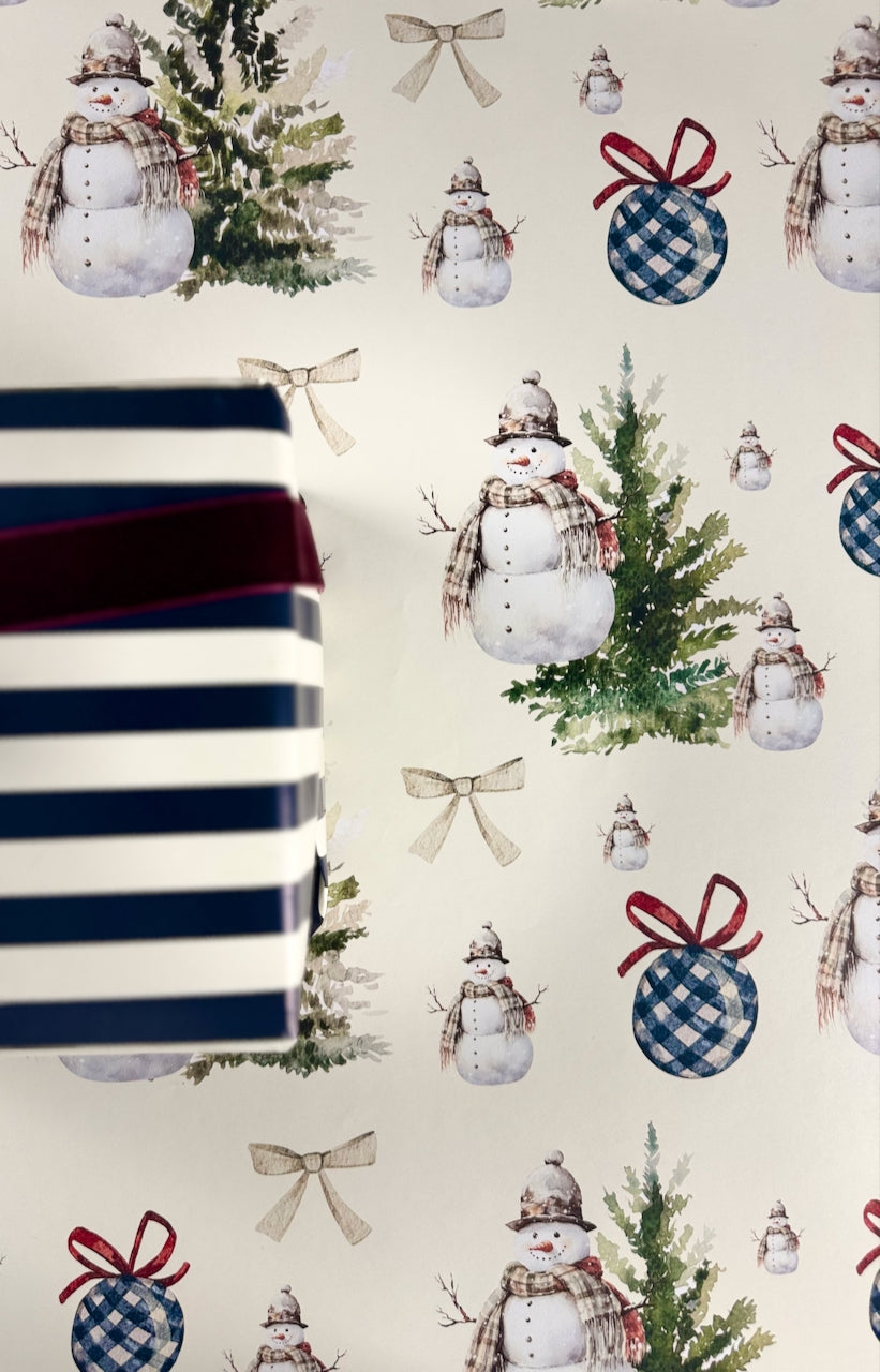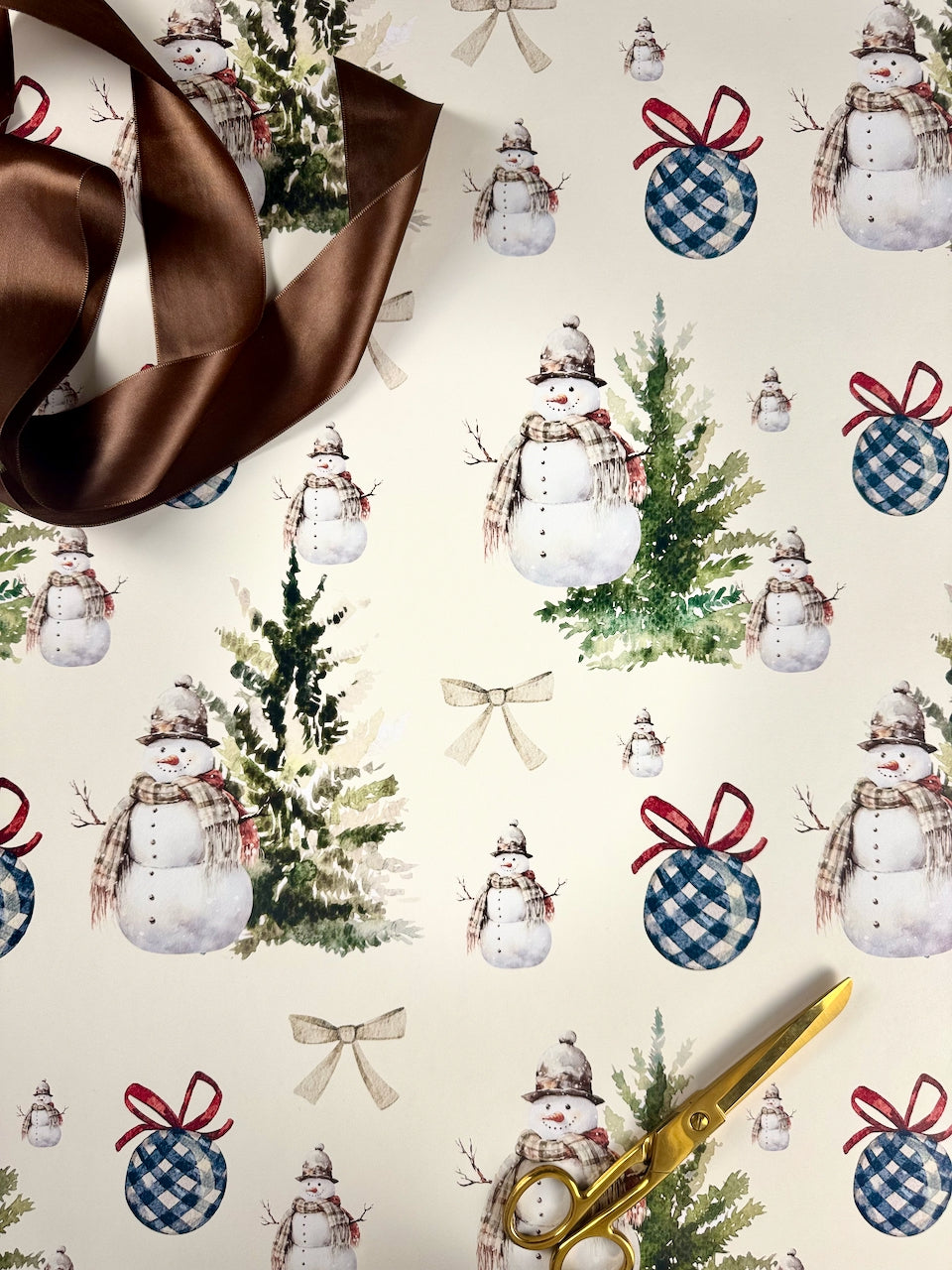 Bring the magic of a classic Christmas to your holiday wrapping with Frost & Fir. Featuring dapper snowmen, plaid-trimmed ornaments, and snowy evergreens, this design captures the warmth and nostalgia of a winter wonderland. Perfect for gifts that feel like they were plucked straight from a storybook Christmas morning.