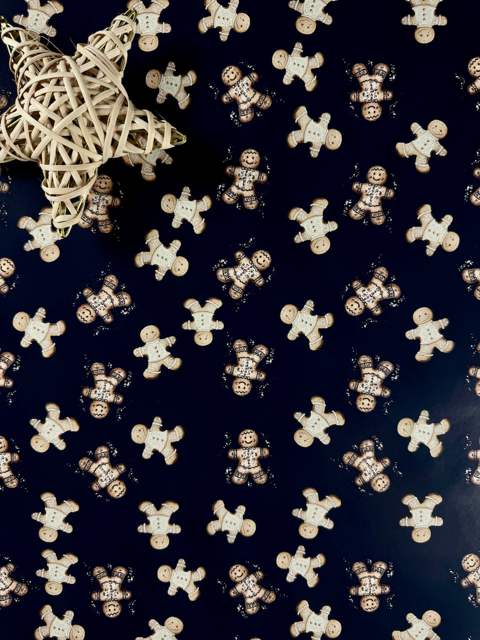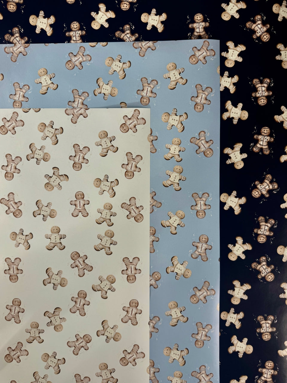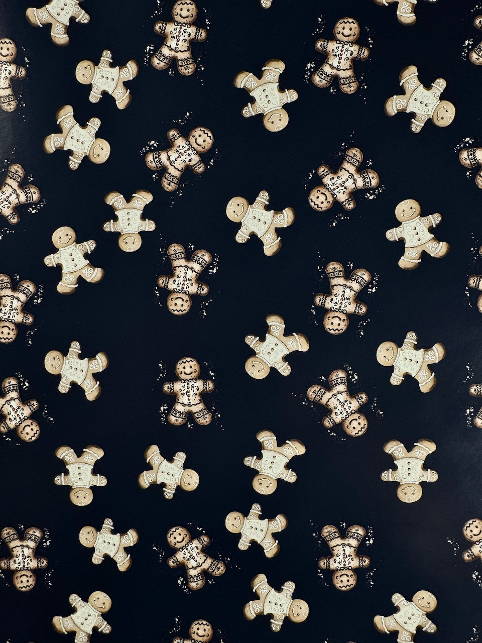 Add a touch of sweetness to your holiday season with Gingerbread Lane, a festive gingerbread wrapping paper featuring cookies sprinkled across soft winter backgrounds. Each gingerbread figure is detailed with intricate icing and a cozy baked texture — the perfect nod to homemade holiday joy.