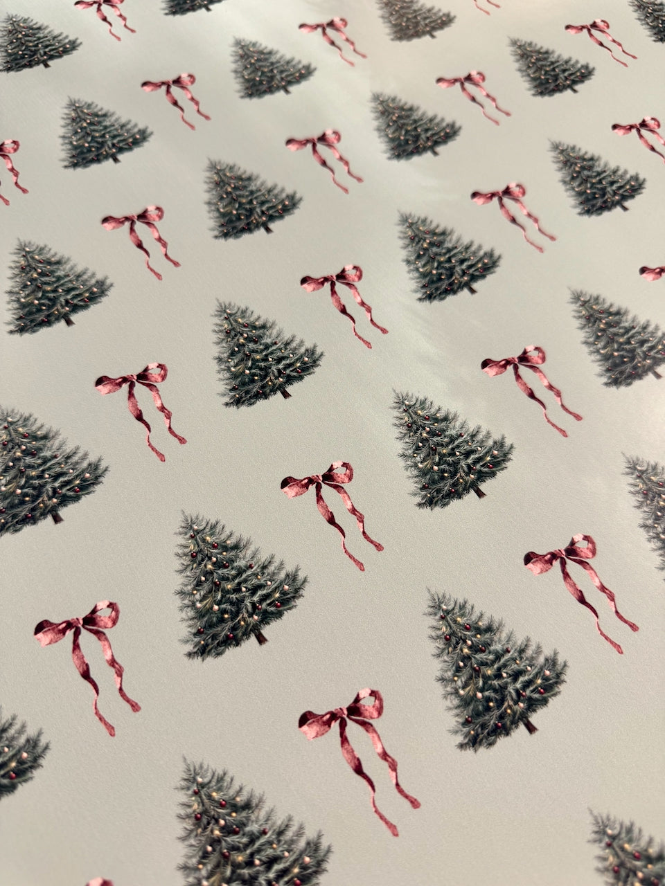Bring understated elegance to your holiday décor with Velvet Tree, a minimal design inspired by the Clean Girl Christmas aesthetic. Featuring perfectly spaced evergreens and soft velvet bows, this pattern blends tradition with a modern, polished vibe. Perfect for wrapping gifts with quiet luxury or creating a chic seasonal statement with peel-and-stick wallpaper.
